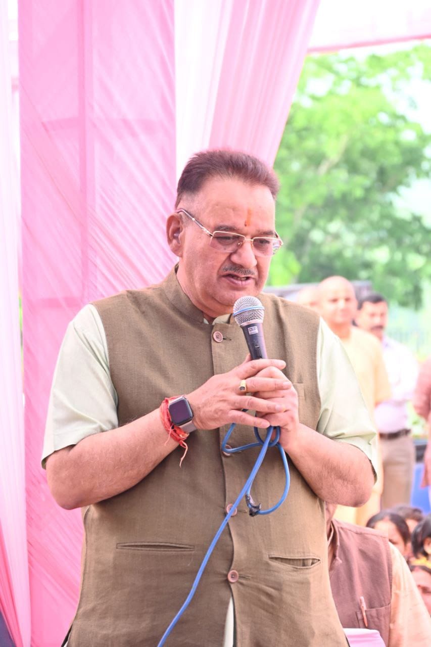 कैबिनेट मंत्री गणेश जोशी ने राधा बांके बिहारी मंदिर निर्माण के भूमि पूजन कार्यक्रम में प्रतिभाग किया