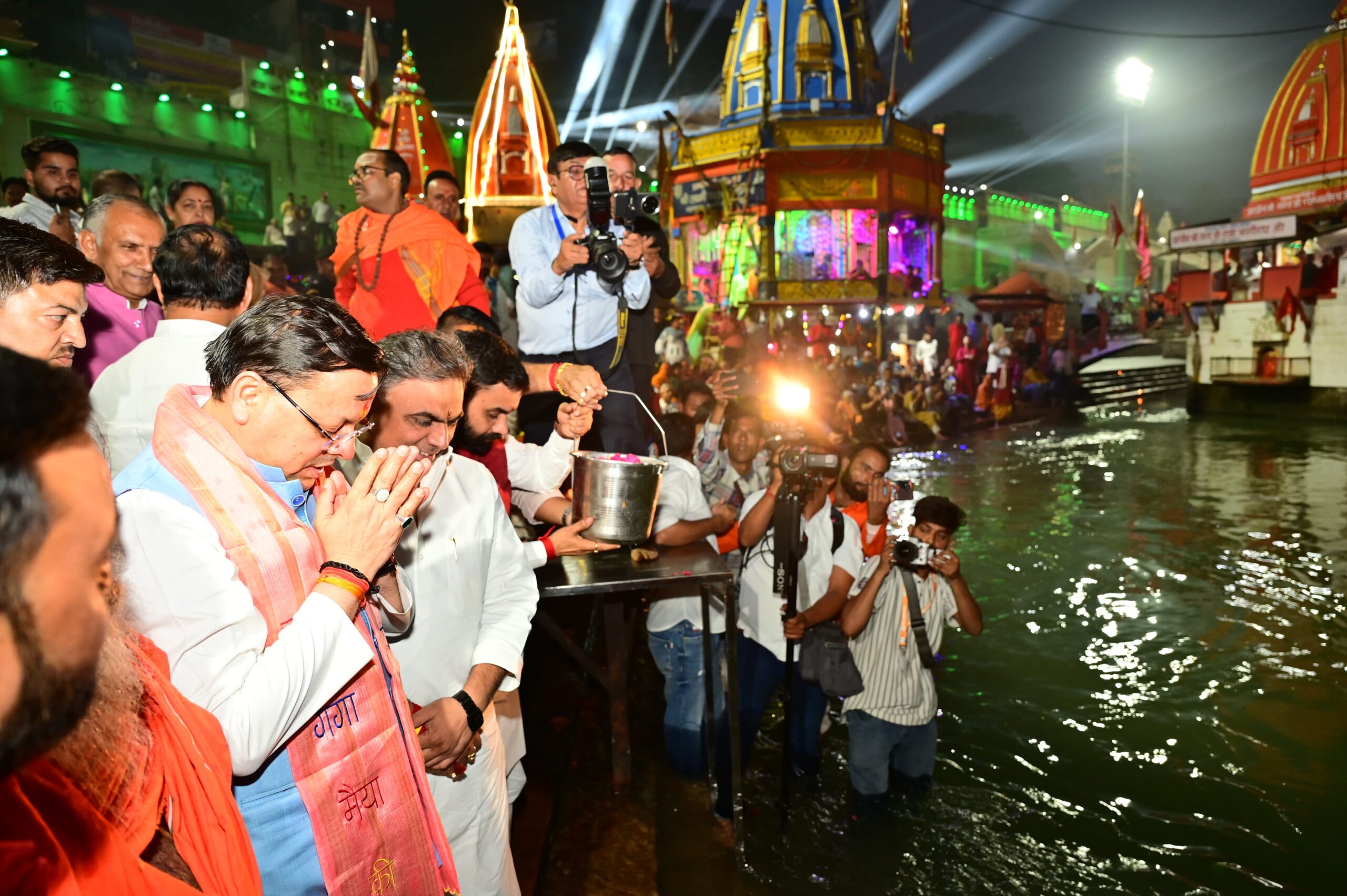 मुख्यमंत्री पुष्कर सिंह धामी ने सोमवार को हर की पैड़ी, हरिद्वार में आयोजित गंगा दीप महोत्सव कार्यक्रम में प्रतिभाग करते हुए मां गंगा की पूजा अर्चना एंव गंगा आरती में सम्मलित होकर प्रदेश की सुख समृद्धि एवं तरक्की की कामना की। इस दौरान हर की पैड़ी स्थित पुलिस चौकी का लोकार्पण भी मुख्यमंत्री द्वारा किया गया।