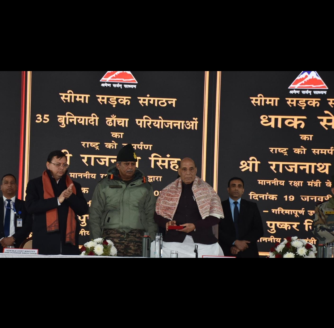 रक्षा मंत्री श्री राजनाथ सिंह ने 19 जनवरी को सीमांत क्षेत्र जोशीमठ ढाक से बीआरओ द्वारा निर्मित 35 इंफ्रास्ट्रक्चर परियोजनाओं का उद्घाटन करते हुए देश को समर्पित किया। इसमें सात राज्यों की 06 सड़कें और 29 ब्रिज शामिल है। परियोजनाओं को बीआरओ द्वारा 670 करोड़ की लागत पर पूरा किया गया। इस दौरान प्रदेश के मुख्यमंत्री श्री पुष्कर सिंह धामी और गढवाल सांसद श्री तीरथ सिंह रावत रक्षामंत्री के साथ मौजूद रहे।