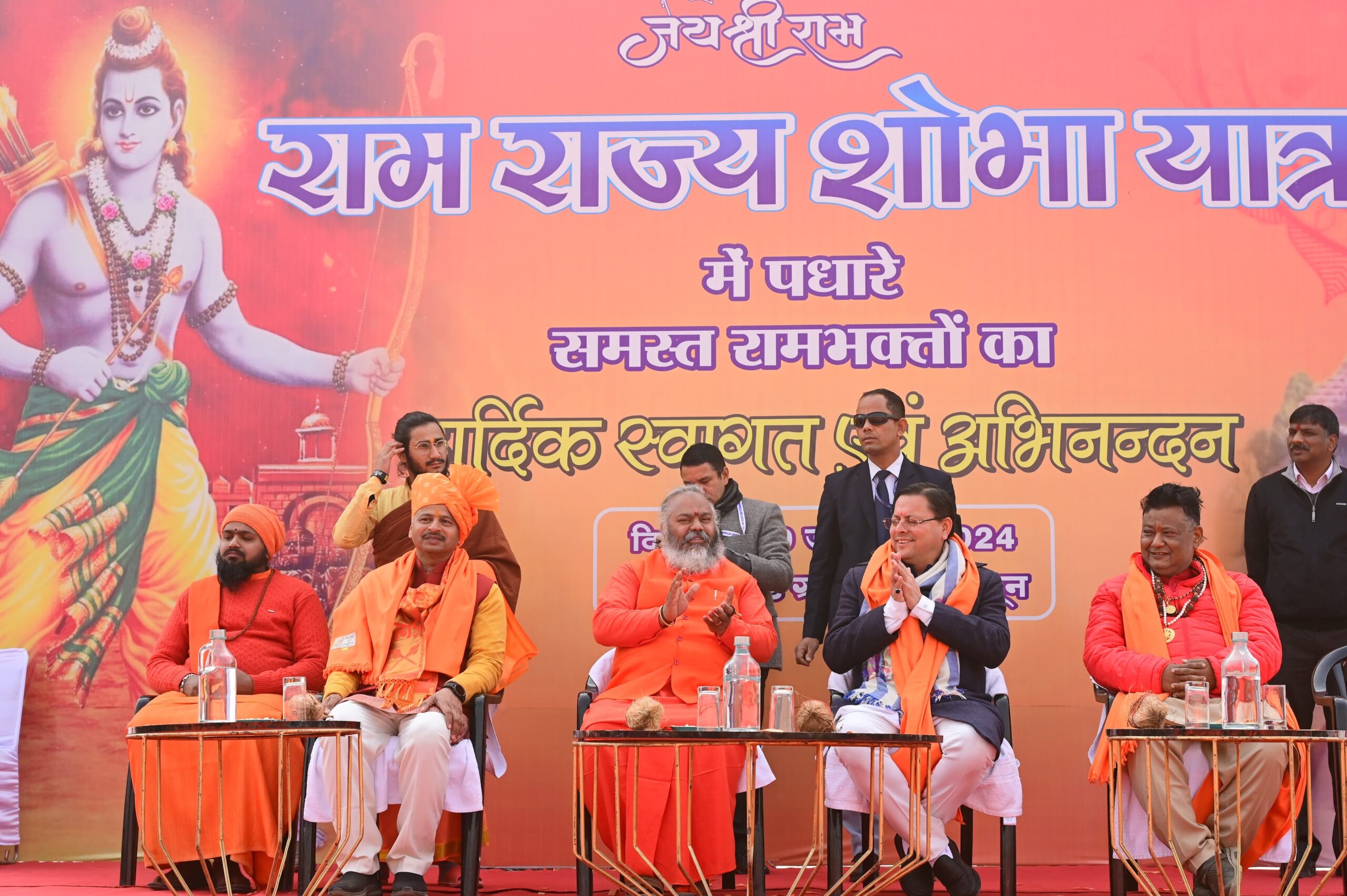 मुख्यमंत्री पुष्कर सिंह धामी ने शनिवार को परेड ग्राउंड देहरादून में श्री राम मंदिर प्राण प्रतिष्ठा उत्सव समिति, द्वारा आयोजित “राम राज्य शोभायात्रा“ कार्यक्रम में प्रतिभाग किया। इस दौरान मुख्यमंत्री श्री पुष्कर सिंह धामी ने कहा कि सभी राम भक्तों का 500 से अधिक वर्ष का इंतजार खत्म होकर भव्य राम मंदिर बनने का सपना पूरा हो रहा है। हजारों साधु संतों राम भक्तों, सनातन प्रेमियों के बलिदान के उपरांत इस पुण्य दिन के हम सब साक्षी बनेंगे।