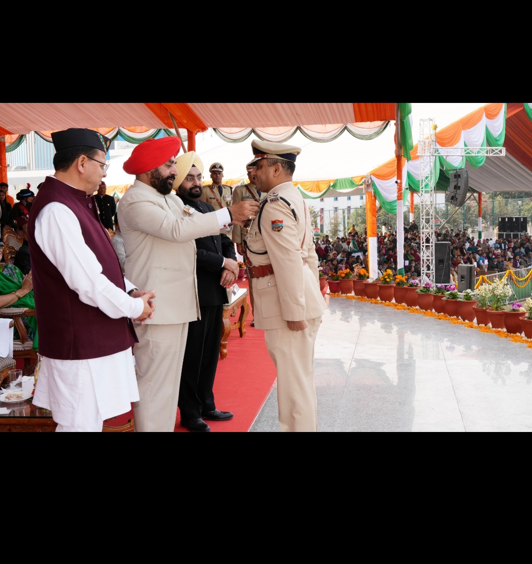 परेड ग्राउंड में राज्यपाल एवं मुख्यमंत्री ने सराहनीय सेवाओं के लिए पुलिस अधिकारियों को सम्मानित किया।